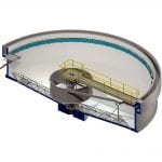 Most frequently used as a clarifier drive, the DBS Pier-Mounted Drive is a low-speed, high-torque, totally enclosed gear drive with positive output torque overload protection. The drive unit has an external rotating drive drum with attachment points for the rake cage. It is supported by a column in the center of the tank, and tank sizes typically range from 40 ft to 300 ft (12 m to 100 m) in diameter.